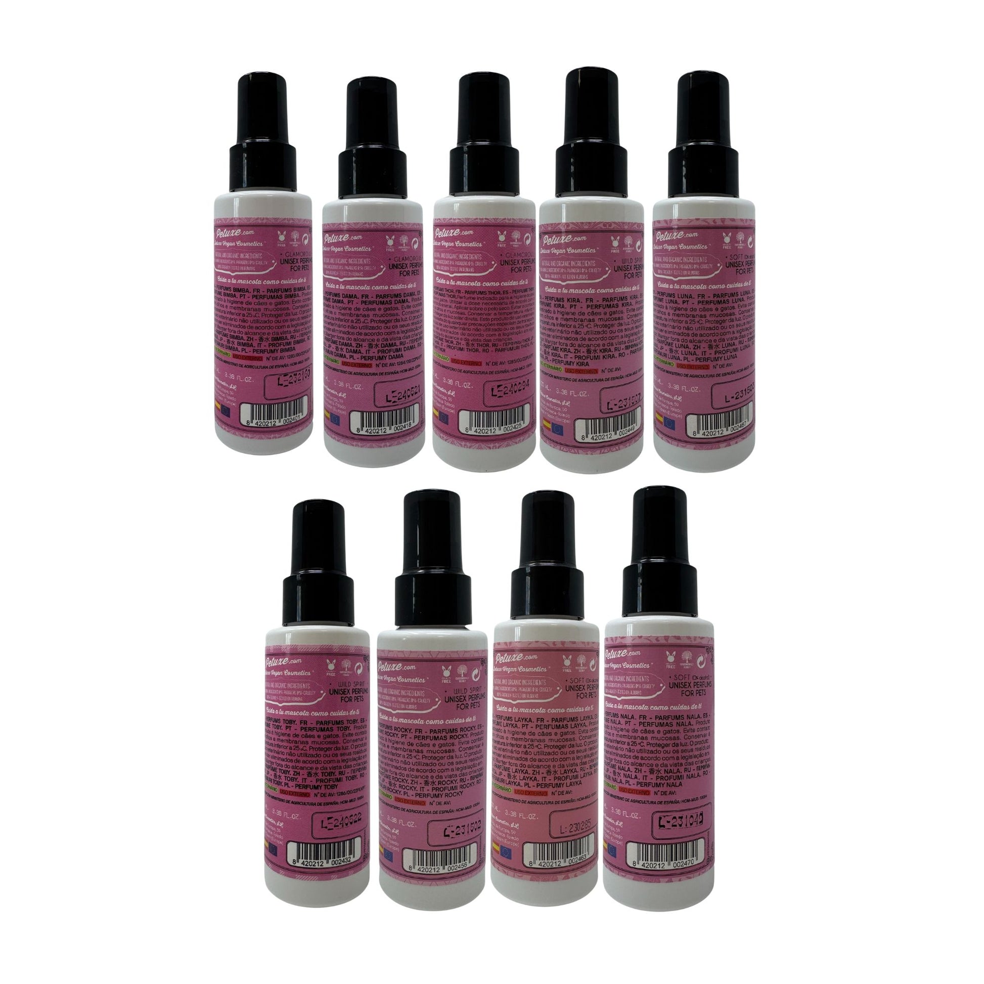 Présentoir de parfum pour animaux de compagnie - 9 unités x 100 ml (1 de chaque)